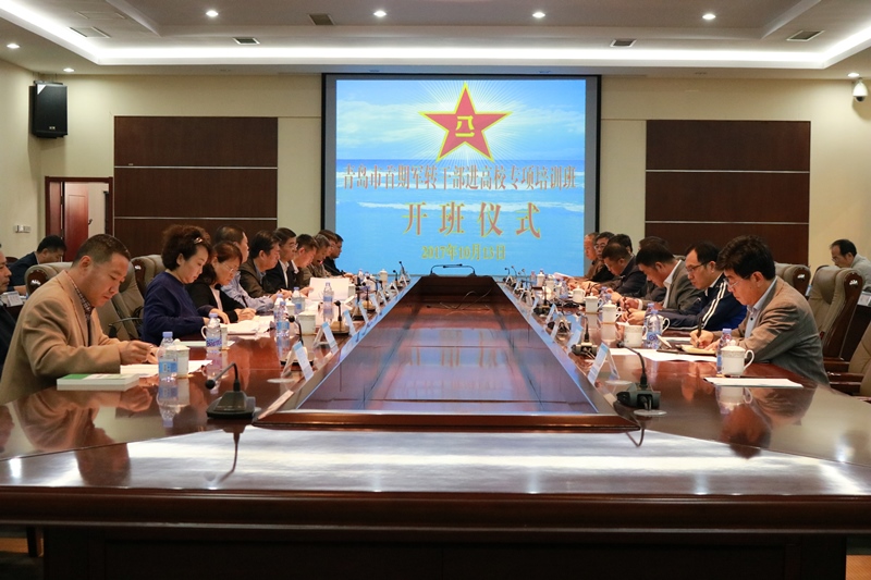 10月13日,青岛市首期军转干部进高校专项培训班开班仪式在我校顺利举行,副校长刘军国,青岛市人力资源和社会保障局党组成员、副局长张锡成出席,青岛市军队转业干部领导小组办公室专职副主任孙刚主持,学员接收安置单位代表、学校相关部门和学院负责人、全体学员参加开班仪式。
